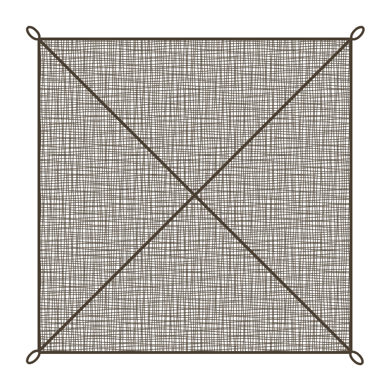 - 1 toile en fibre de coco dans la taille et la forme sélectionnées, avec cosses cœur en acier inoxydable cousues à chaque angle