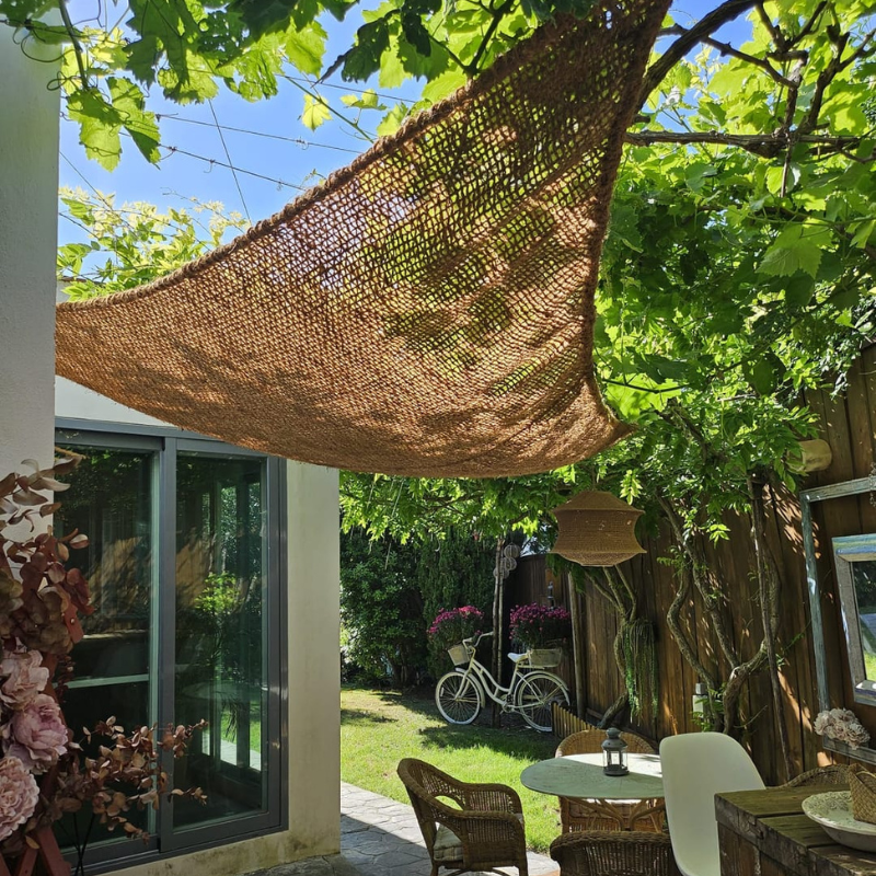 La forme triangulaire de notre voile d'ombrage coco apporte un dynamisme visuel incomparable à votre espace extérieur. Ses lignes épurées et géométriques contrastent élégamment avec la texture organique du matériau, créant un équilibre parfait entre modernité et naturel. Cette voile tressée projette des motifs d'ombre fascinants qui évoluent tout au long de la journée, transformant votre terrasse ou jardin en un espace vivant et changeant. Le voile d'ombrage triangulaire coco peut être installé seul comme élément focal de votre aménagement ou combiné à d'autres voiles pour créer des compositions architecturales originales qui personnalisent votre extérieur.